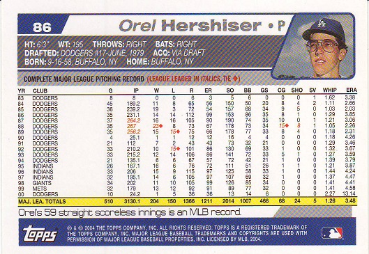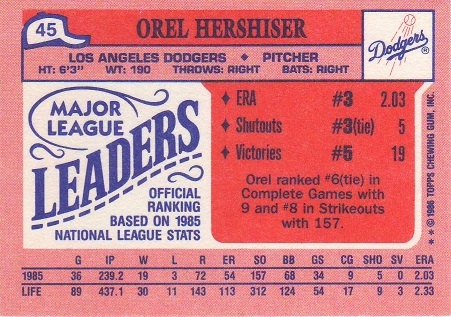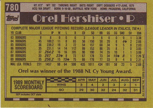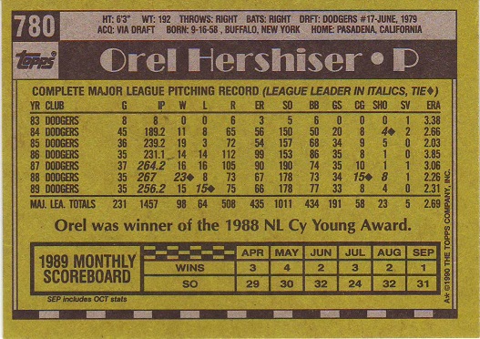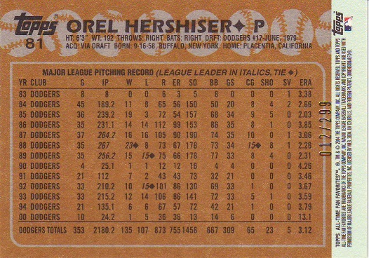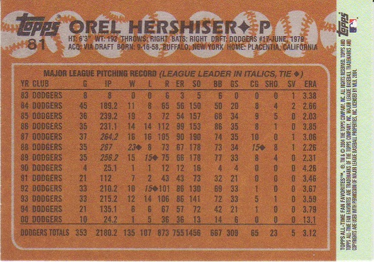 Stickers Hershiser/Young |