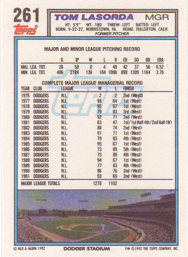 Tom Lasorda - Manager card |