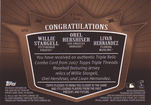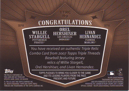 Triple Threads, Hernandez, Hershiser, Stargell Game Used