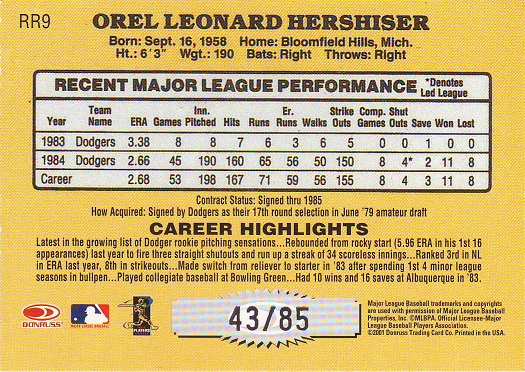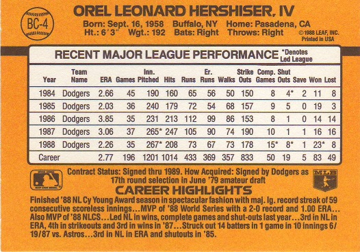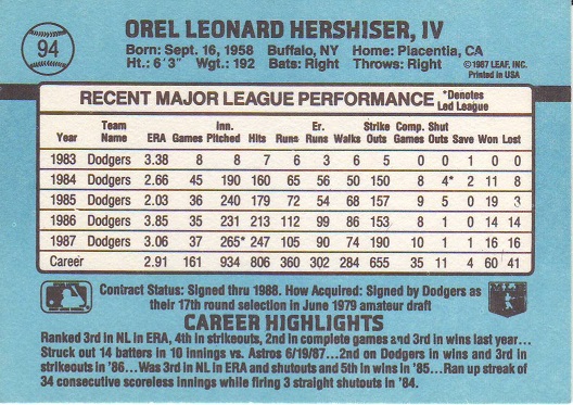 Retro 1987 Holo Career Stat Line |