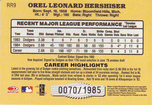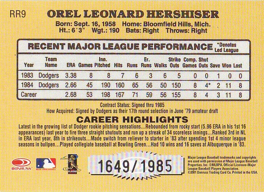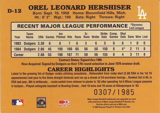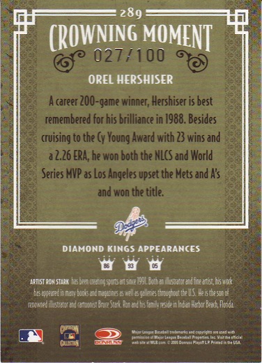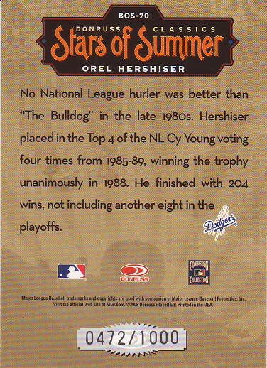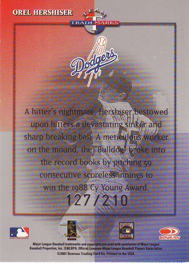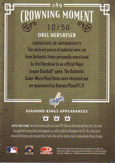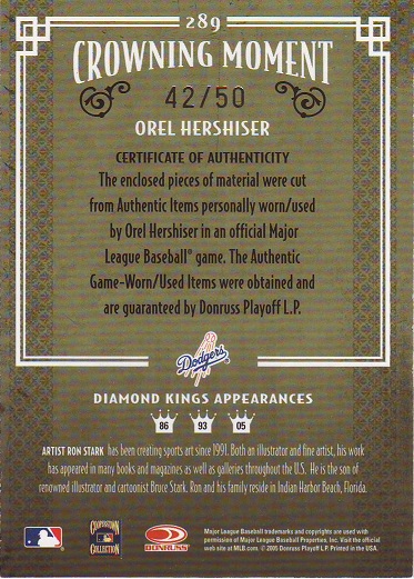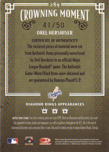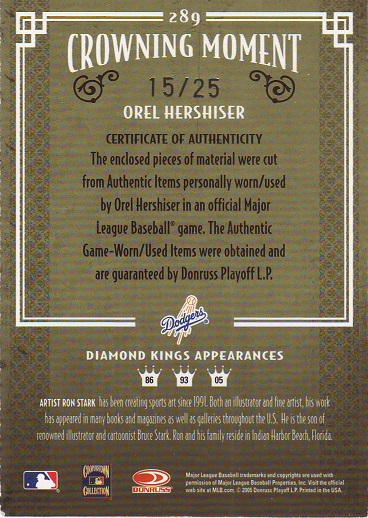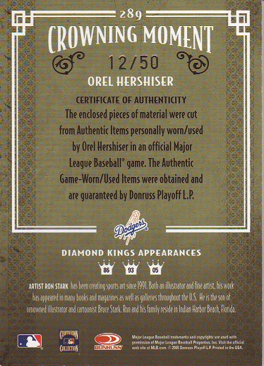 Greats Dodger Blues, Jersey, Signature Card, production run of