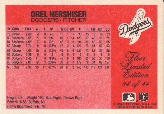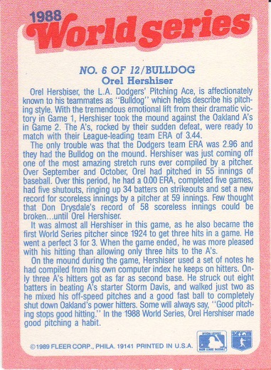 Extra Bases, Pitchers Duel Drabek/Hershiser, Long Card |