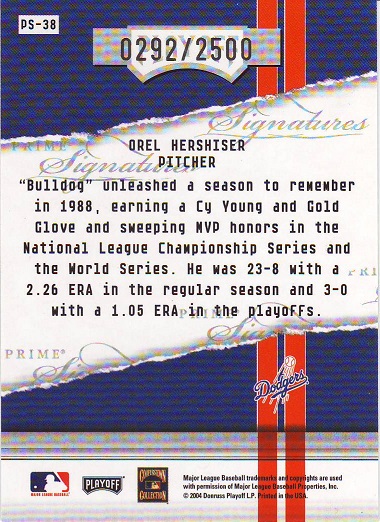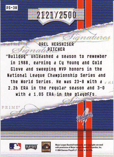 Prime Cuts Timeline 1988 NL Cy Young Jersey Signature |