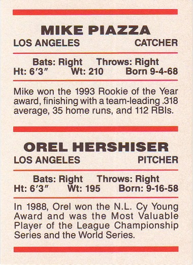 Red Foley Dodgers Team Leaders Hershiser/Piazza |