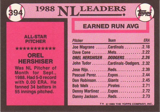 Stickers Hershiser/Leonard |