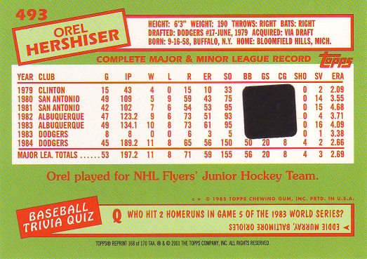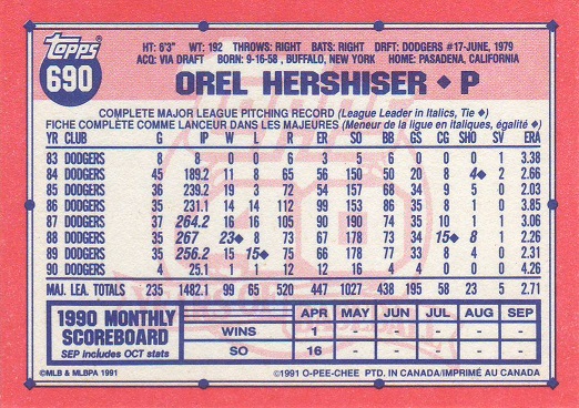 Stickers Hershiser/Young |