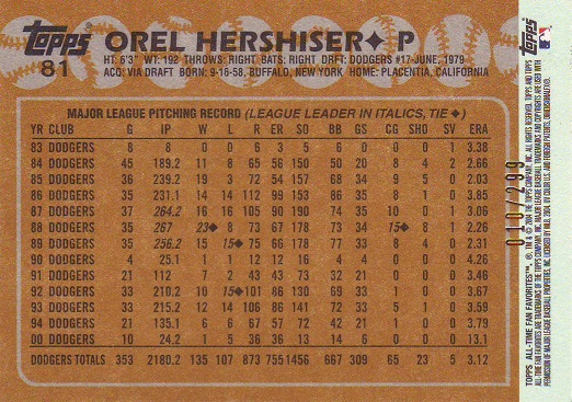 Stickers Hershiser/Gwynn |