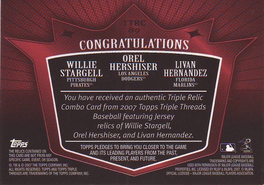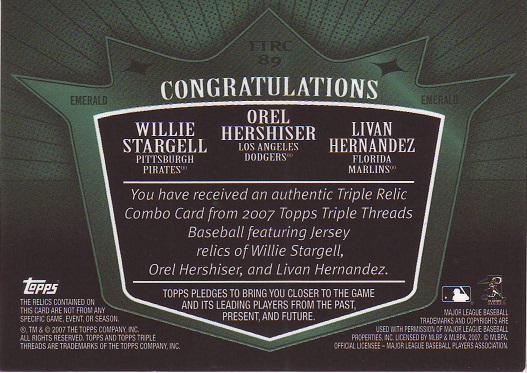 Triple Threads, Hernandez, Hershiser, Stargell Game Used