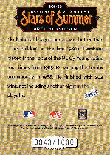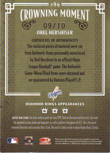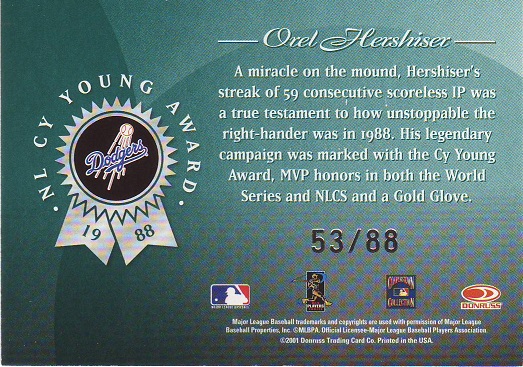 Greats Dodger Blues, Jersey, Signature Card, production run of