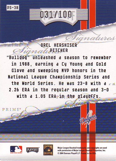 Prime Cuts Timeline 1988 NL Cy Young Jersey Signature |
