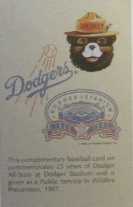 Smokey Bear 25th Anniversary Dodgers Commemorative |
