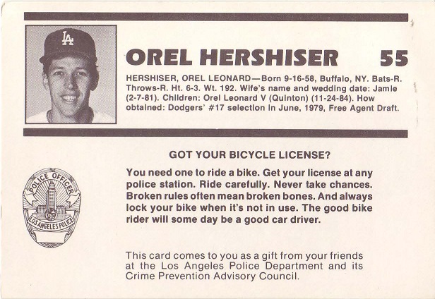 Dodgers Police Card 25th Anniversary |